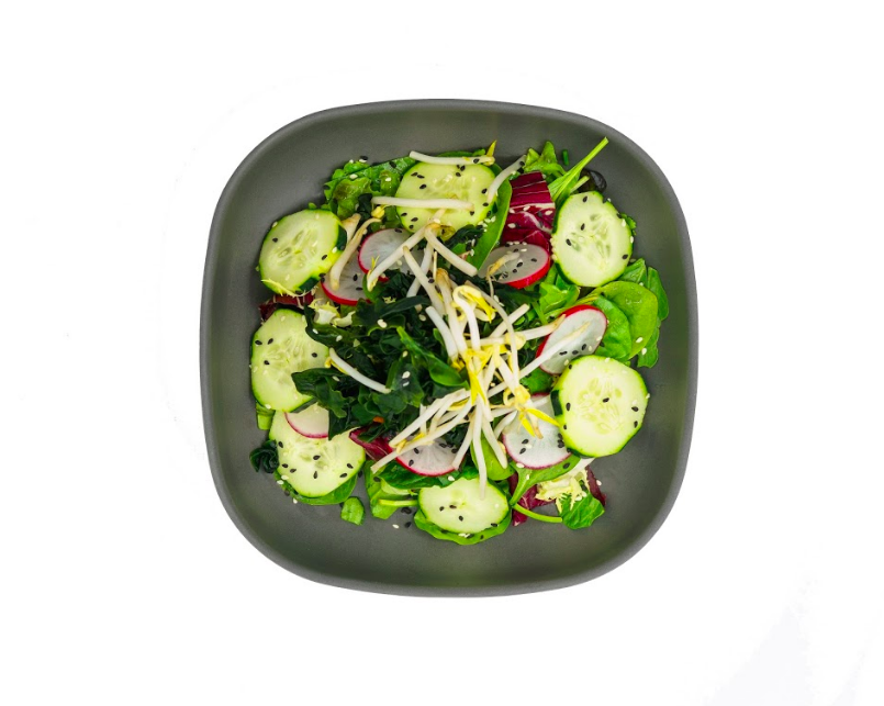 AMANIDA VERDA AMB CARPACCIO DE MELÓ, RUCA, PASTANAGA, AMETLLES I FORMATGE