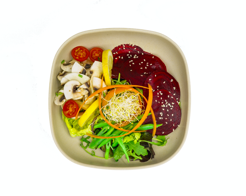 GREEN SALAD WITH LENTILS, ZUCCHINI, MUSHROOMS AND BASIL