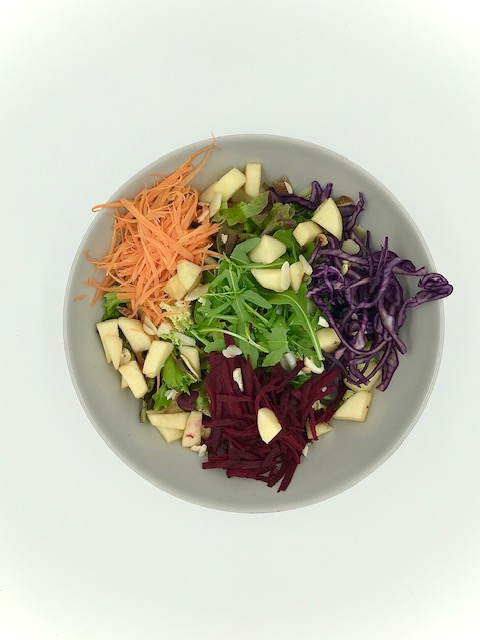 GREEN SALAD WITH ARUGULA, CARROT, BEETS, APPLE AND NUTS