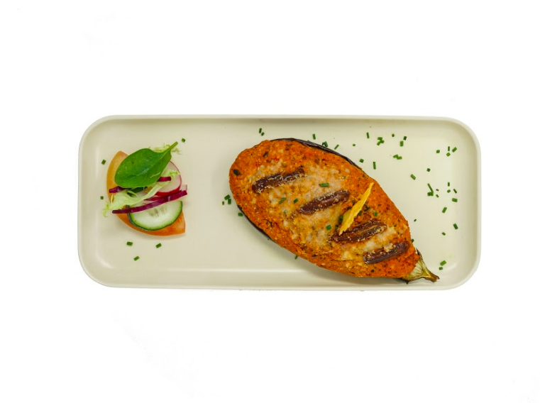 TEXTURED PEAS RAGU STUFFED AUBERGINE
