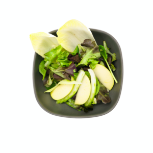 GREEN SALAD WITH ROASTED ENDIVE AND ZUCCHINI, GOAT CHEESE AND OLIVES