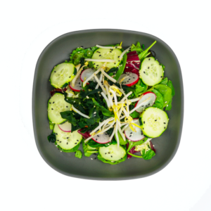 GREEN SALAD WITH TOMATO, CARROT, CUCUMBER AND BEAN SPROUTS