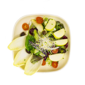 ENSALADA VERDE CON ENDIVIAS, MANZANA, HINOJO, RÁBANOS Y OLIVAS