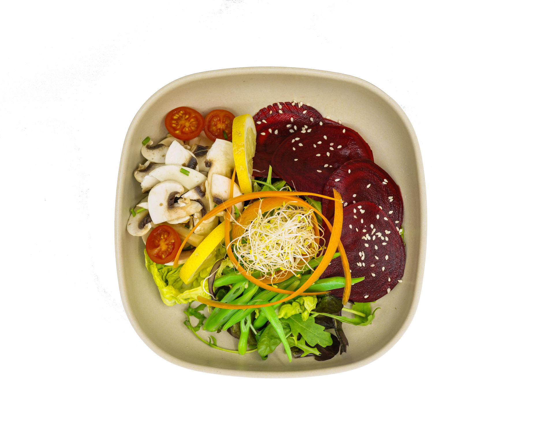 ENSALADA VERDE CON CHAMPIÑONES Y CEBOLLA MORADA MARINADOS, CALABACÍN Y SEMILLAS DE SÉSAMO cantidad