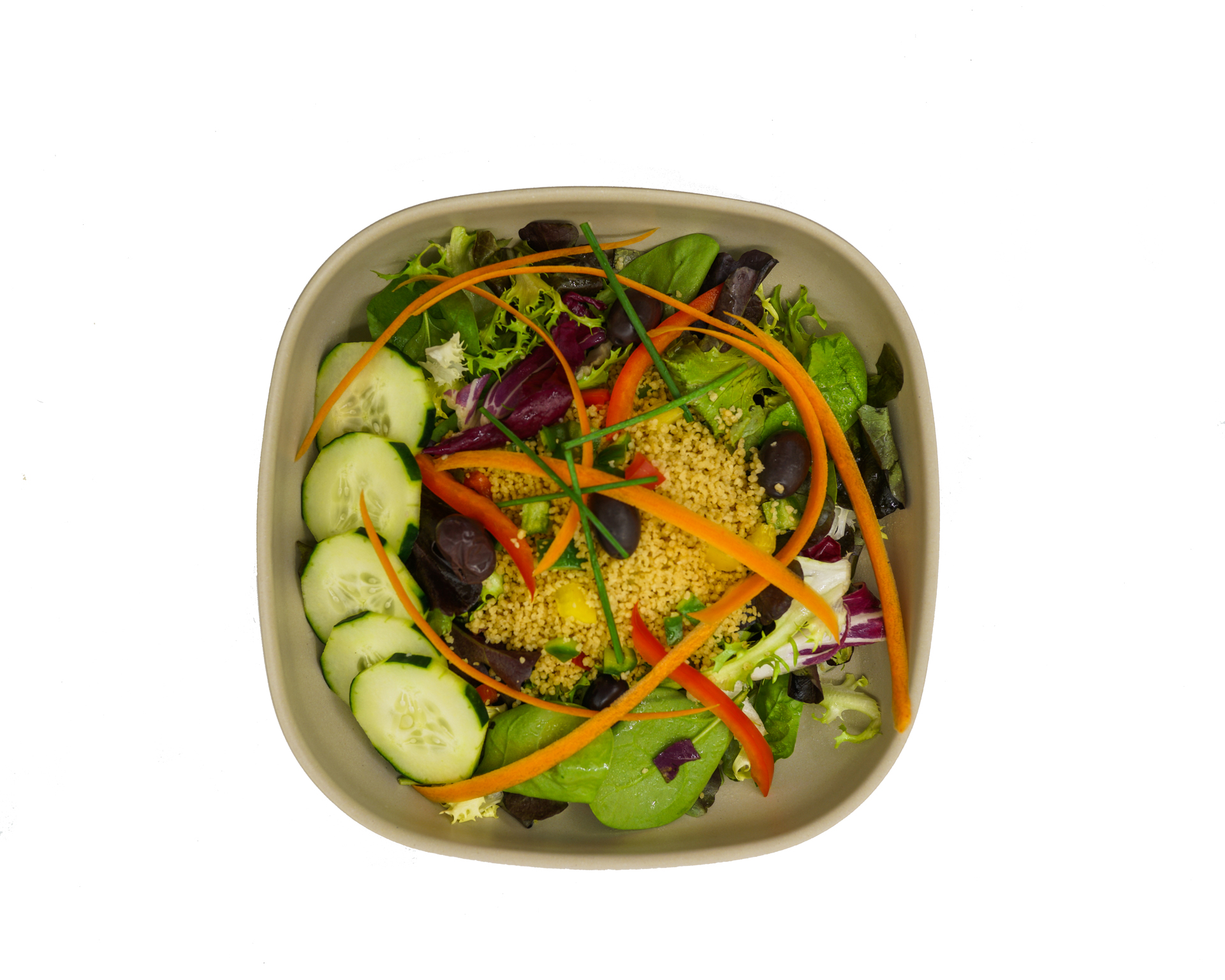 ENSALADA VERDE CON CUSCÚS, PEPINO, PIMIENTO ROJO, ZANAHORIA Y OLIVAS
