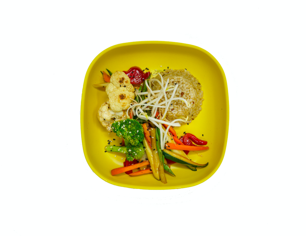 WOK DE VERDURAS, TOFU Y BROTES DE SOJA CON FIDEOS DE ARROZ