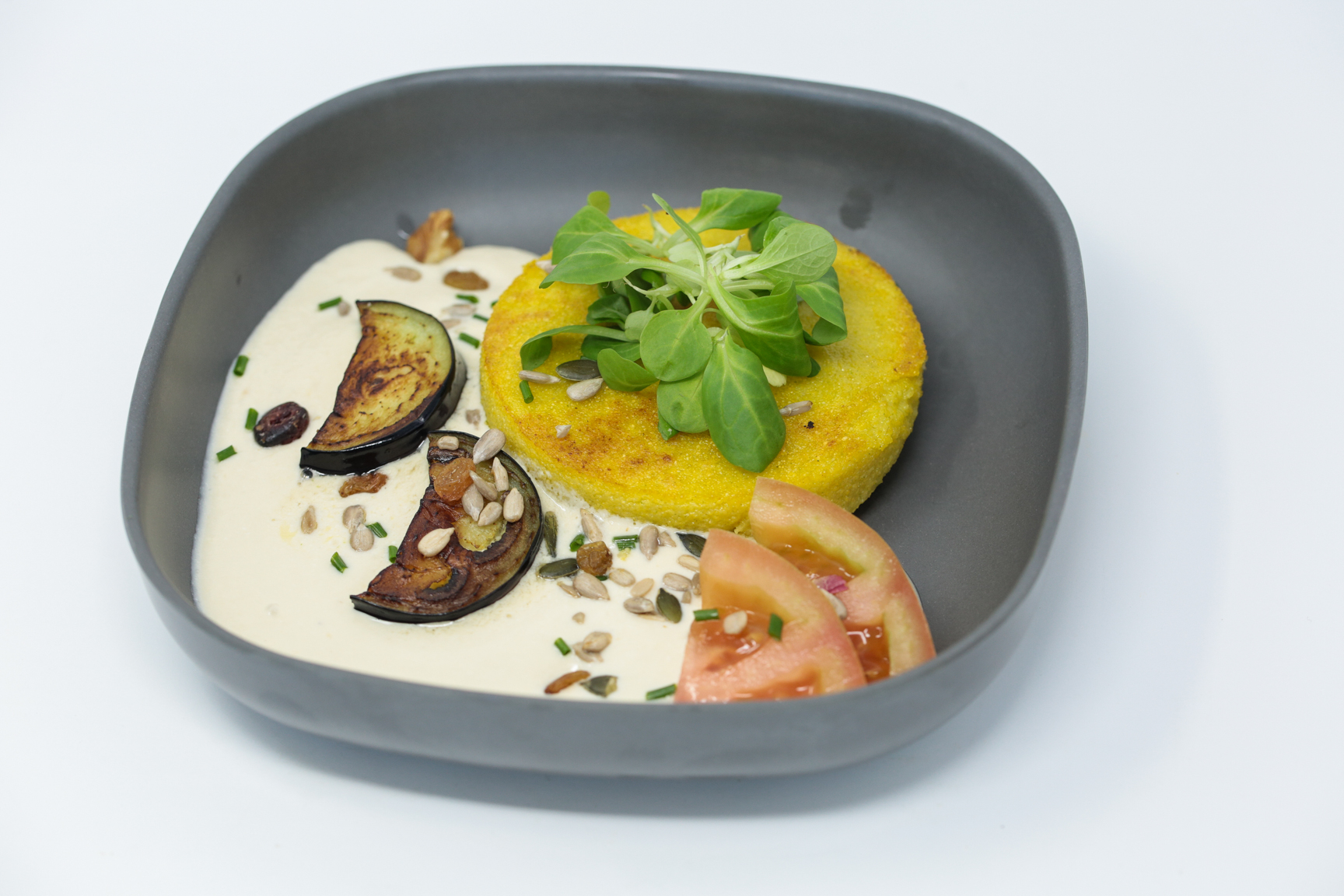 POLENTA CON VERDURAS Y SALSA 4 QUESOS
